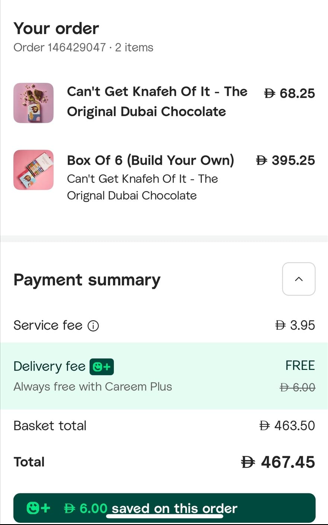 - Can't Get Knafeh Of It - The Original Dubai Chocolate : 68.25 AED (개당 한화 27000원 내외, 환률에 따라 다름)
